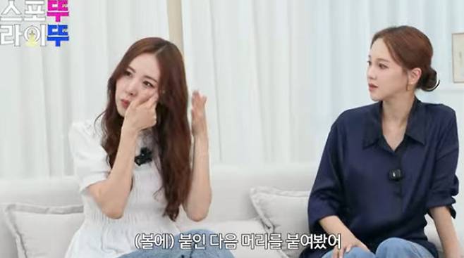 이어 “그때 ‘야야야’ 뮤비를 찍었는데 내가 카메라를 내려다보면서 찍다보니 옆에 내린 머리가 들리면서 볼이 다 나오는 거다. 너무 충격을 받고 안 움직이게 해야겠다. 생각했다. 그래서 옆에 머리를 스프레이를 뿌리고 눌러봤더니 고정이 되더라. 어느 날은 너무 피곤하니까 막 파우더를 많이 했더니 스프레이도 안 붙더라. 옆에 봤더니 양면테이프가 보이더라. 그래서 그거를 뜯어서 볼에 붙인 다음에 머리를 붙여봤다. 안 떨어지더라”고 볼살과 사투를 벌였던 당시를 떠올렸다.