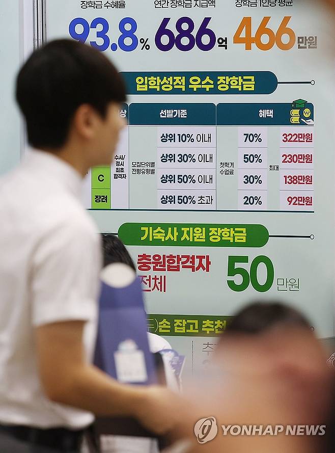 (구미=연합뉴스) 김현태 기자 = 13일 경북 구미시 구미코에서 열린 2026학년도 대학 진학 경북박람회에서 수험생과 학부모 등이 행사장을 살펴보고 있다. 경상북도교육청 연구원이 주최한 이번 행사에는 전국 64개 대학이 부스를 운영했다. 고등학교 1, 2학년생을 위한 2027, 2028 대입전형의 이해 특강과 16개 학과의 대학생 멘토링 등도 진행됐다. 2025.7.13