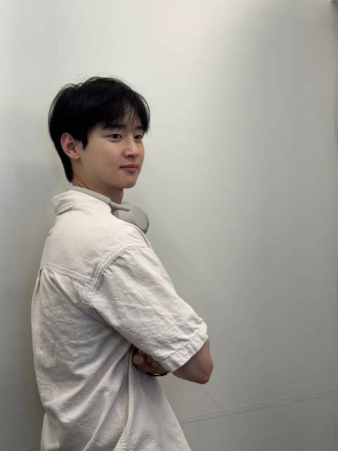 공개된 사진 속 장동윤은 크림색 반팔 셔츠에 헤드셋을 목에 걸친 채 편안한 분위기를 연출하고 있다.