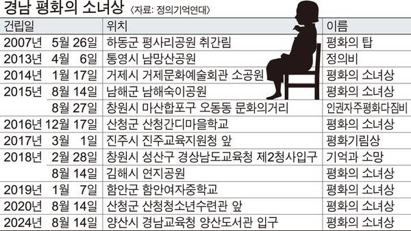 올 7월 기준 정부에 등록된 일본군 '위안부' 피해 할머니는 경남 36명을 비롯해 전국에 240명이다. 경남은 '위안부' 피해자가 가장 많았던 지역이다. 전국 피해 할머니 중 생존자는 6명뿐이다. 이중 경남에 거주하는 할머니는 1명으로, 이 할머니는 신원을 공개하지 않은 채 살아가고 있다.