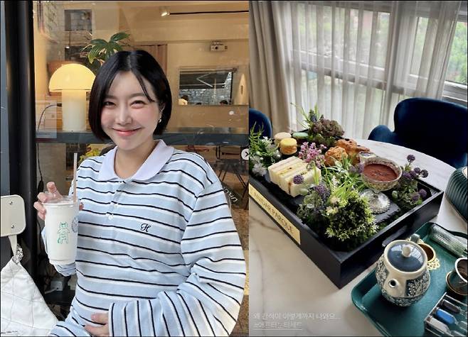 공개된 사진 속에는 산후조리원에서 티타임을 즐기는 레이디제인의 모습이 담겼다. 산후조리원에서는 레이디제인을 위해 샌드위치와 마카롱, 스콘 등 애프터눈티세트를 제대로 준비해줬다.