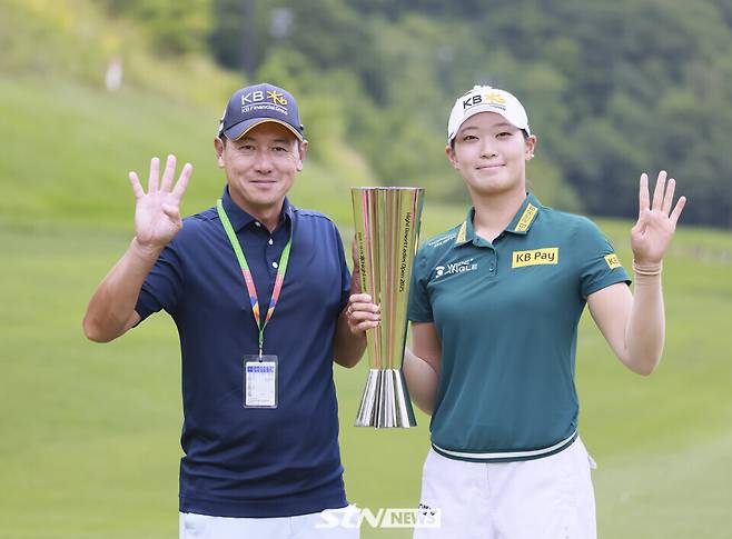 [STN포토]방신실, 캐디 양원철과 2승 합작