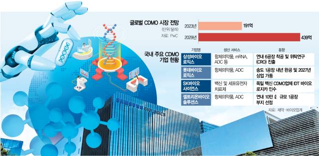 셀트리온은 자회사 셀트리온바이오솔루션스를 통해 10만 ℓ 규모의 CDMO 공장 설립을 검토하고 있으며 SK그룹은 SK팜테코와 SK바이오사이언스(302440)를 중심으로 프랑스 이포스케시와 독일 IDT바이오로지카 인수를 통해 CDMO 사업을 확장하고 있다.