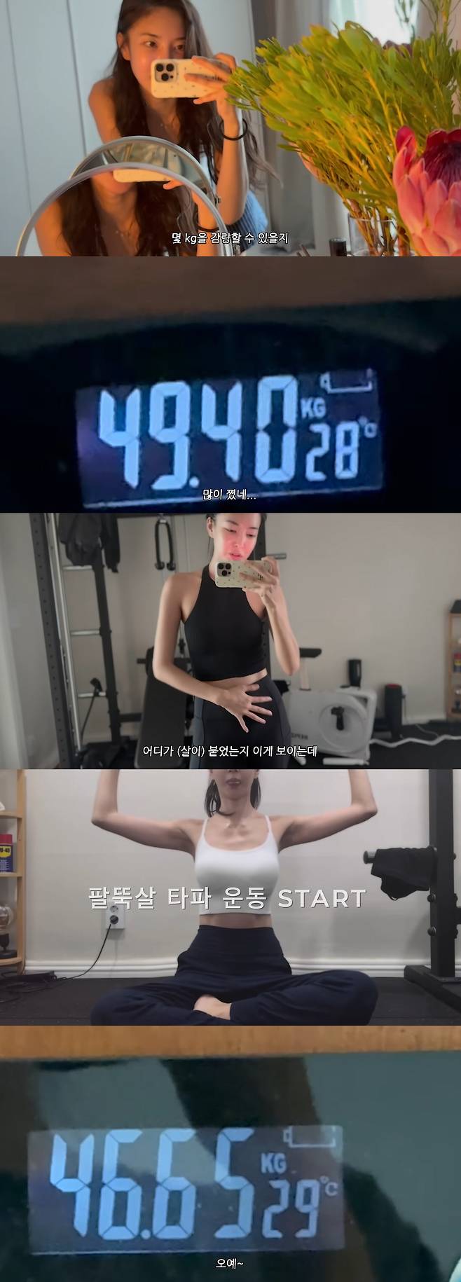 김윤지는 딸 돌잔치를 일주일 앞두고 다이어트에 돌입했다. 김윤지는 체중계에 올라가기 전 "요새 쉬면서 많이 먹었고 몸무게를 안 재봤다. 어느 정도 감량해야 할지"라며 긴장했다. 이어 49.4kg를 확인, "많이 쪘네. 47kg 정도를 유지하고 있었는데... 일주일 동안 몇 kg를 감량할 수 있을지"라며 충격에 빠졌다.