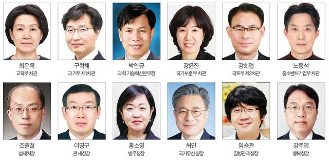 이 대통령은 교육부 차관으로는 최은옥 전 교육부 고등교육정책실장을, 과학기술정보통신부 제1차관으로는 구혁채 현 과기부 기조실장을 임명했다. 과학기술정보통신부 과학기술혁신본부장에는 박인규 서울시립대 물리학과 석좌교수가, 국가보훈부 차관에는 강윤진 현 보훈단체협력관이, 국토교통부 2차관에는 강희업 대도시권광역교통위원장이 각각 발탁됐다.