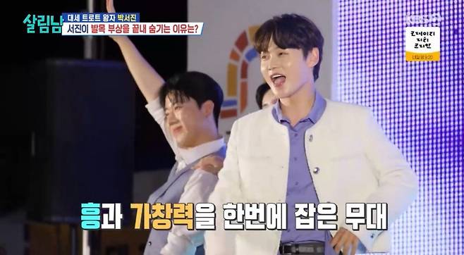 ‘살림남’ 본방사수까지 알차게 홍보를 마친 박서진은 다음 행사장으로 이동했다. 이번에도 역시 찰진 멘트와 장구의 신 다운 완벽한 무대로 유려하게 행사를 뒤흔들었다. 무대 내내 옆에서 케어해준 효정에게 감동한 박서진은 소원을 들어주겠다고 제안했고 생일을 챙겨주기로 했다.