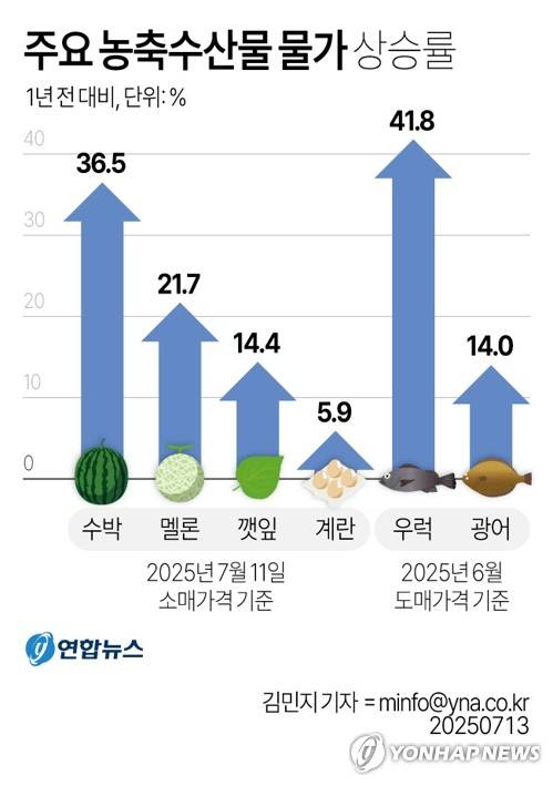 (서울=연합뉴스) 김민지 기자 = 올여름 이른 무더위가 찾아와 농축수산물 가격을 강타했다.