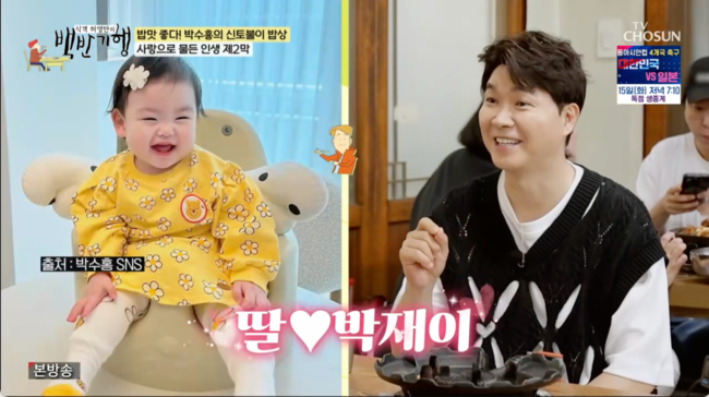 딸 이름이 재이라고 밝힌 박수홍은 딸의 사진을 보여주며 "정말 미칠 것 같습니다"라며 남다른 딸바보의 면모를 보였다.