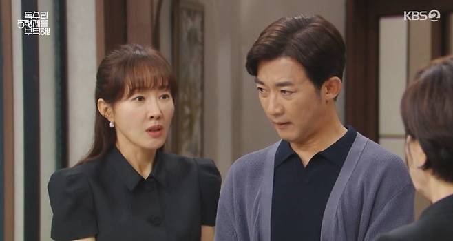 13일 KBS 2TV ‘독수리 5형제를 부탁해!’에선 결혼 후 정수(박정수 분)를 모시고 살자고 제안하는 광숙(엄지원 분)과 이에 황당함을 표하는 동석(안재욱 분)의 모습이 그려졌다.