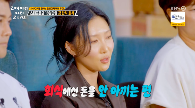 패널들이 깜짝 놀라자 화사는 “저는 회식에서 돈을 안 아낀다”라고 밝혔다.
