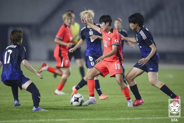 일본도 가만 있지 않았다. 전반 20분 페널티 박스 외곽에서 시도한 리코 요시다의 오른발 슈팅이 오른쪽으로 빗나갔다. 1분 뒤에는 김민지가 왼발 슈팅을 날렸지만 높이 떴다. 김민지의 왼발은 4분 뒤에도 번뜩였는데, 이번에는 왼쪽 상단 구석을 벗어났다. 전반 31분 정민영의 오른발 슈팅까지 막히는 등 계속되는 대한민국의 공격은 무위로 끝났다.