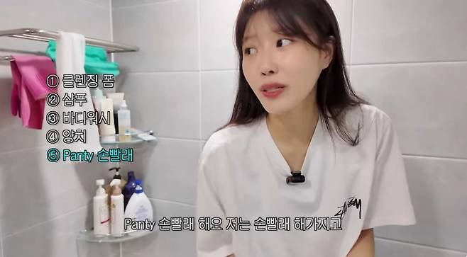 샤워 루틴을 언급하면서도 “샤워하는데 8분밖에 안 걸린다. 얼굴 먼저 클렌저 하고 샴푸를 한다. 바디워시 하면서 양치하고 팬티를 손세탁한다. 마지막에 트리트먼트 하면서 2차 클렌징을 한다”고 솔직하게 밝히기도 했다.