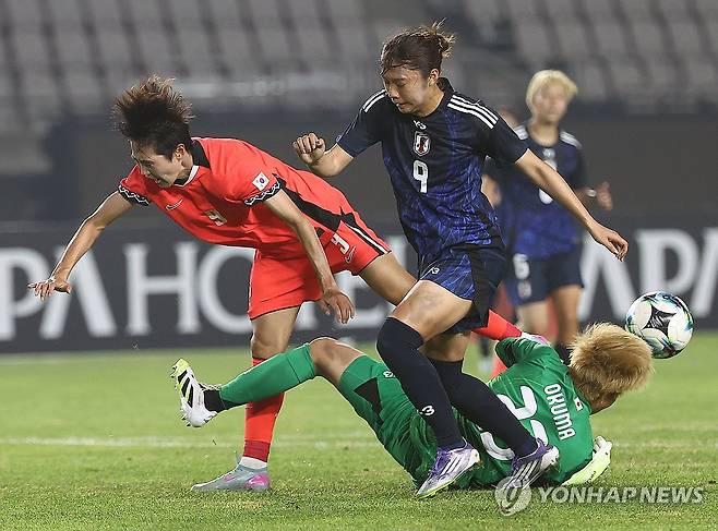 한국은 재차 실수로 위기를 허용했다. 전반 35분 패스 차단 이후 정민영에게 강한 전방 압박이 가해지면서 공을 잃었다. 곧바로 나루미야의 중거리 슈팅이 터졌지만, 빗나갔다.