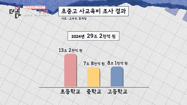 지난해 우리나라 사교육비는 고등학교 8조 천억 원 등 29조 2천억 원 규모로 사상 최고치를 기록했습니다.