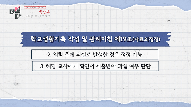 올해 1월 KBS 보도 이후, 학생부 부실 기재의 심각성을 인지한 교육부는 결국, 교사 과실로 인한 오류를 막기 위해 '학생부 작성·관리 지침'을 개정했습니다.