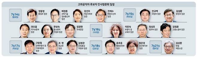 국회는 14일 정동영(통일부)·강선우(여성가족부)·배경훈(과학기술정보통신부)·전재수(해양수산부) 장관 후보자 등 4명을 시작으로 오는 18일까지 총 16명에 대한 청문회를 진행한다.