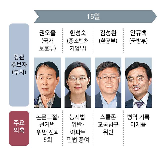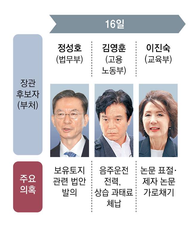 하지만 여권 내부에서도 두 후보자를 둘러싼 각종 의혹과 관련해 우려가 나오고 있다. 민주당의 한 중진 의원은 “내각에 여성 비율 등을 고민하다 보니 개인사적 검증이 느슨했을 수 있다”며 “소명 여부와 상관없이 무조건 통과시킨다고 하기엔 정치적 부담이 있을 것”이라고 했다.