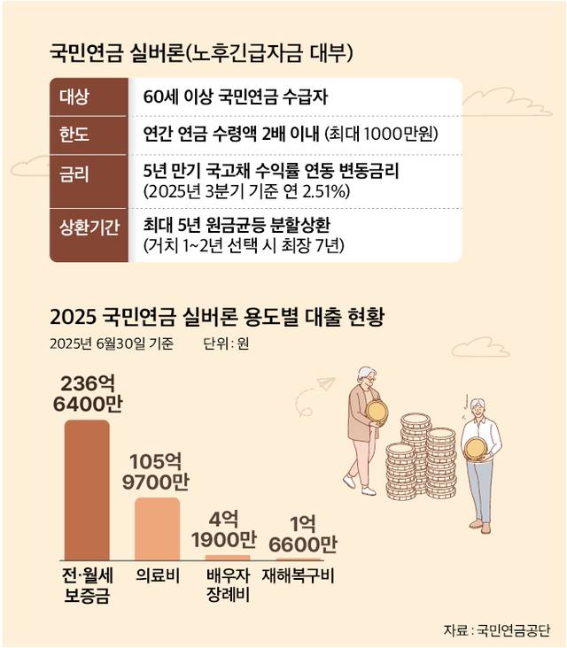 실버론은 60세 이상 국민연금 수급자를 대상으로 전·월세 보증금이나 의료비 등 긴급 생활자금을 대출해주는 제도다.