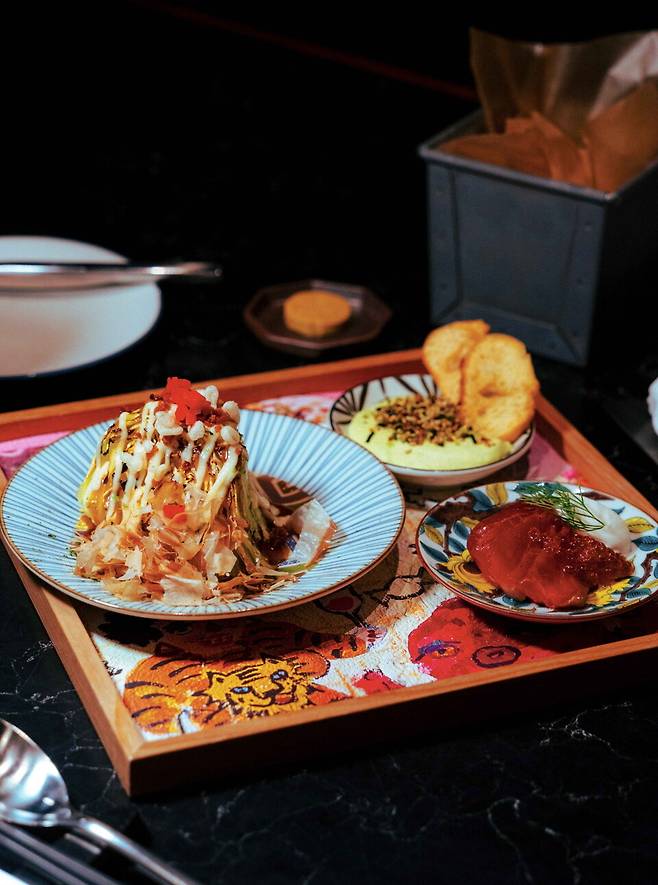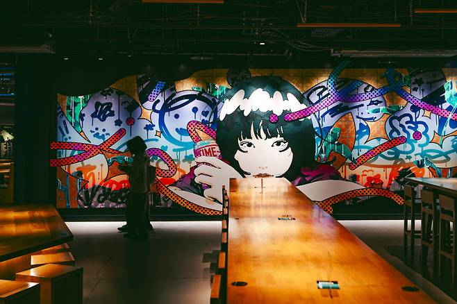 호텔은 오사카를 다양한 방식으로 품고 있다. 1층 호텔 입구 천장엔 타코야키 모양의 조명이 매달려 있고, 타코야키의 문어 다리와 소스, 가다랑어포, 푸른 해초 등은 벽면의 추상화로 표현됐다.