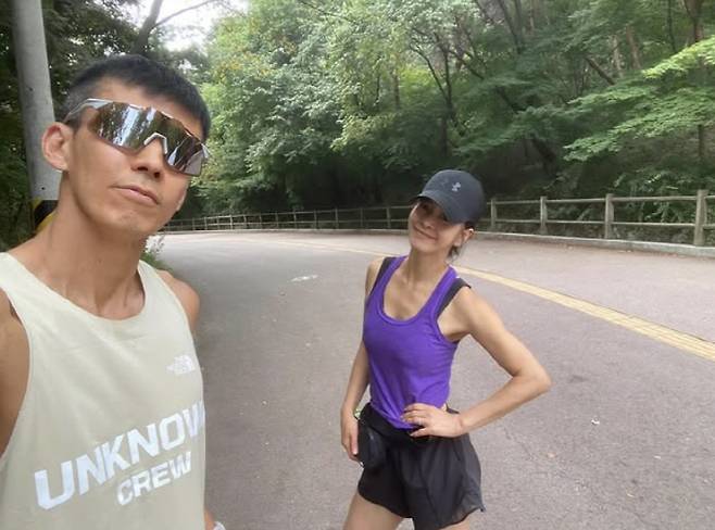 그룹 지누션 멤버 션이 아내 배우 정혜영과 러닝 데이트를 즐겼다.
