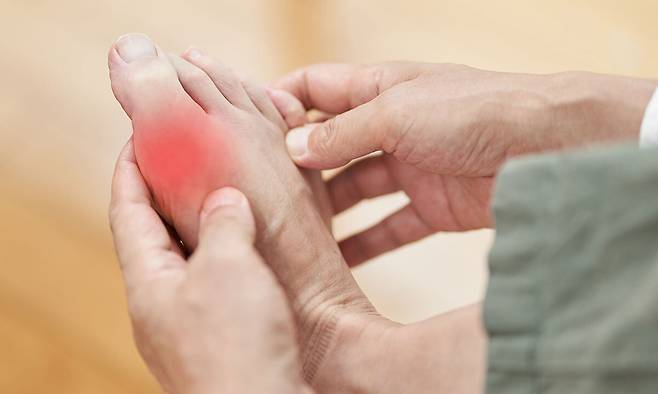 혈액 속 요산 농도가 일정 수준 이상으로 높아지면 관절에 요산 결정이 쌓이게 되는데, 면역세포가 요산 결정을 ‘적’으로 인식해 공격하면서 급성 염증이 생긴다. 이로 인해 관절이 붓고, 뜨겁고, 찌르고 불에 덴 듯한 극심한 통증이 나타난다. 특히 첫 발작의 50% 이상이 엄지발가락에서 발생한다.
