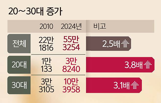 14년새 20대 환자 3.8배·30대 3.1배 ↑