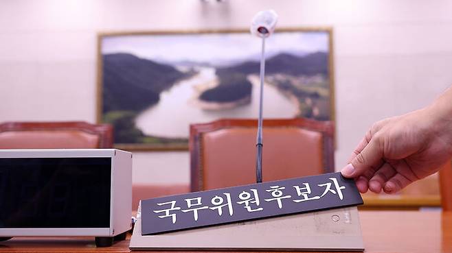 ▲ 장관 후보자들에 대한 인사청문회를 앞둔 13일 서울 여의도 국회 농림축산식품해양수산위원회 회의실 내 '국무위원 후보자' 석.