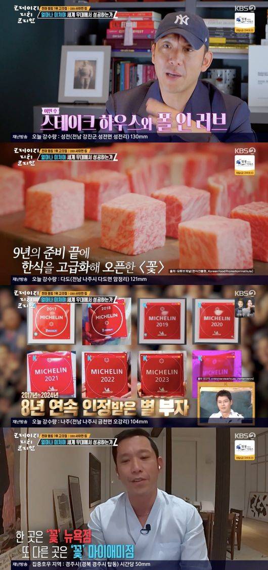심지어 전미 1위는 물론, 세계 스테이크 레스토랑 10위 안에 들기도 했다며 “진짜 자랑스럽다. ‘꽃’이 미국 동부에서 코리안 스테이크 하우스가 아니라 스테이크 하우스로 받았는데 한 곳은 뉴욕점이고, 또 다른 곳은 마이애점이다”라고 자랑했다.