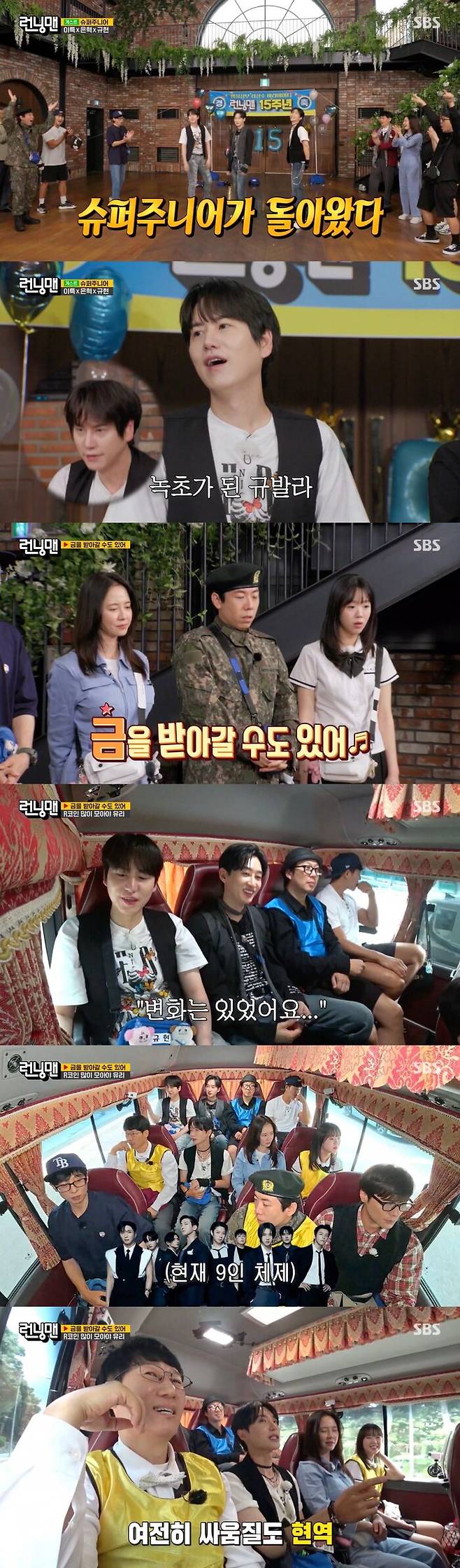 사건 사고 없이 15주년을 맞았다며 자축한 런닝맨을 축하하기 위해 게스트도 등장했다. 올해로 데뷔 20주년을 맞은 슈퍼주니어가 주인공.