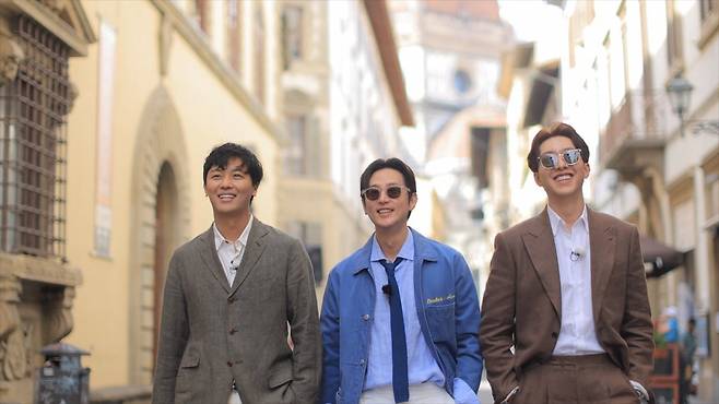 이런 가운데 ‘뚜벅이 맛총사’는 권율, 연우진, 이정신의 3인 3색 ‘멋쁨 종합선물세트’ 비하인드컷을 공개하며 본방송을 기다리는 팬들의 심장을 요동치게 했다. 공개된 사진 속 세 사람은 얼굴에 함박웃음을 머금은 채 피렌체의 고풍스러운 거리를 함께 걷고 있다. 특히 세 사람 모두 스타일리시한 캐주얼 수트룩을 선보이며 ‘패션의 본고장’ 이탈리아 거리의 시선을 한 곳에 모았다.