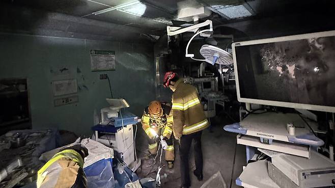 수술실 내부를 태운 불에서 연기가 나면서 5명이 연기를 마셔 응급실로 옮겨졌고, 환자와 의료진 등 40명이 스스로 대피한 것으로 잠정 집계됐습니다.