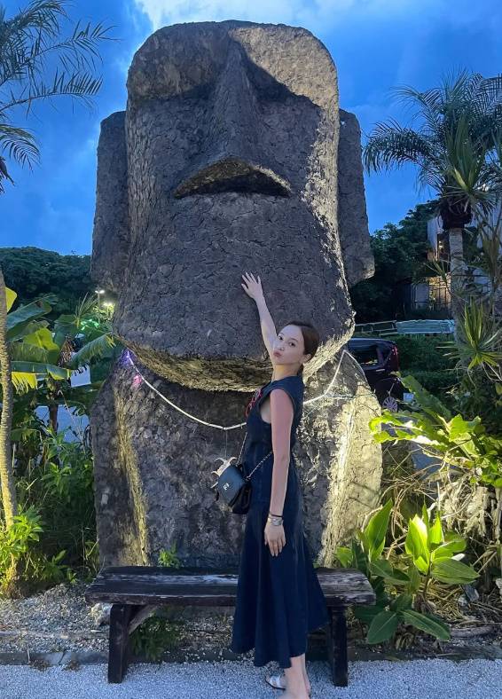 사진 속 아유미는 리조트 내 카페 공간에서 커피를 고르는 모습부터, 해변가 휴양지에서 음료를 즐기며 여유를 만끽하는 모습, 야외에 세워진 대형 모아이 석상 앞에서 포즈를 취하는 모습까지 다채로운 여행의 순간을 담았다.