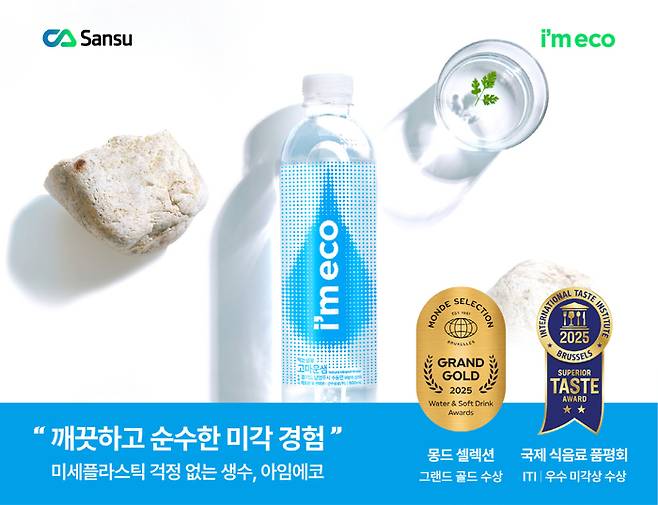 산수음료㈜의 친환경 생수 브랜드 '아임에코'가 유럽의 권위 있는 국제 품질 평가 기관인 '몽드 셀렉션(Monde Selection)'과 '국제식음료품평회(ITI)'에서 뛰어난 맛과 품질로 글로벌 인증을 획득하는 우수한 성과를 거뒀다.