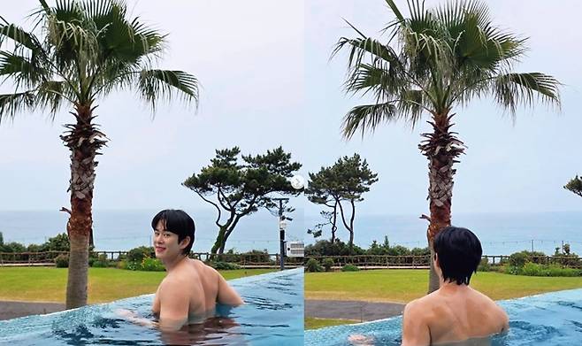 공개된 사진 속 손민수는 제주도의 한 수영장에서 여유로운 시간을 보내고 있는 모습. 그는 푸른 바다와 야자수가 어우러진 풍경 속, 수영장에 몸을 담근 채 카메라를 향해 미소 짓고 있다. 청량한 분위기와 단단하게 다져진 등근육이 시선을 사로잡는다.