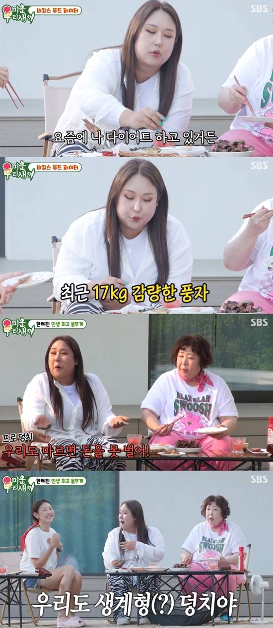 풍자가 "나 요즘 다이어트하고 있다. 총 17kg가 빠졌다"라며 다이어트 근황을 밝혔다. 신기루도 "이번 여름에 7kg 정도 빼볼까 생각 중이다. 7kg을 빼면 얼굴이 너무 예뻐진다. 풍자랑도 친하고 홍윤화랑도 친한데 둘이 막 살을 빼니까 '나도 빼야 되나?' (생각이 들었다). '얘네만 말라지고 나만 크면 어떡하지'라는 생각에 쫓기는 기분이다"라고 말했다.