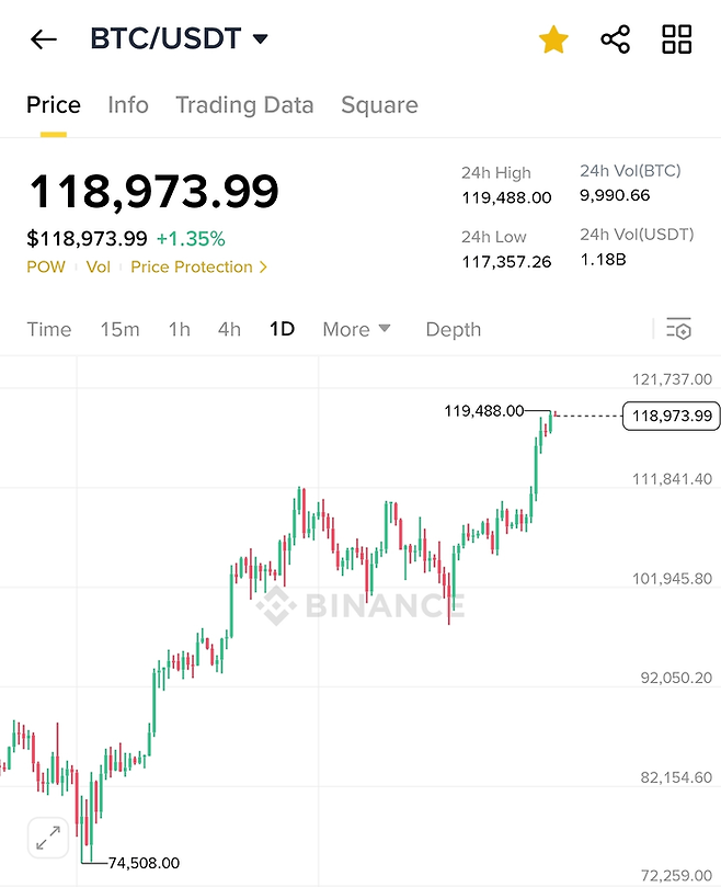 비트코인은 이날 오전 11만9488달러까지 상승하며 역대 최고가를 경신했다.