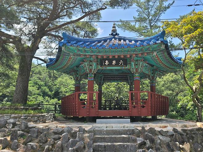 | ▲ 육모정 400여년 전 선비 유림들이 용소앞 너럭바위 위에 6각형 모양의 정자를 지어 육모정이리 이름지었다. 1960년 현 위치에 복원 |