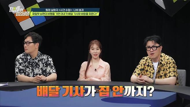 특히 의뢰인의 아내가 참석한 동창회에는 과거 서로 첫사랑이었던 남자 동창도 있었다는 사실이 밝혀지며 불륜의 의심은 더욱 짙어졌다. 이에 탐정단의 조사가 시작됐고 곧이어 놀라운 사실이 드러난다. 의뢰인 아내가 배달 음식을 자주 시켜 먹는데 매번 똑같은 배달 기사가 방문한다는 것이었다. 심지어 어느 날은 배달 기사가 의뢰인 집 안으로 들어가는 장면까지 포착해 충격을 안겼다.