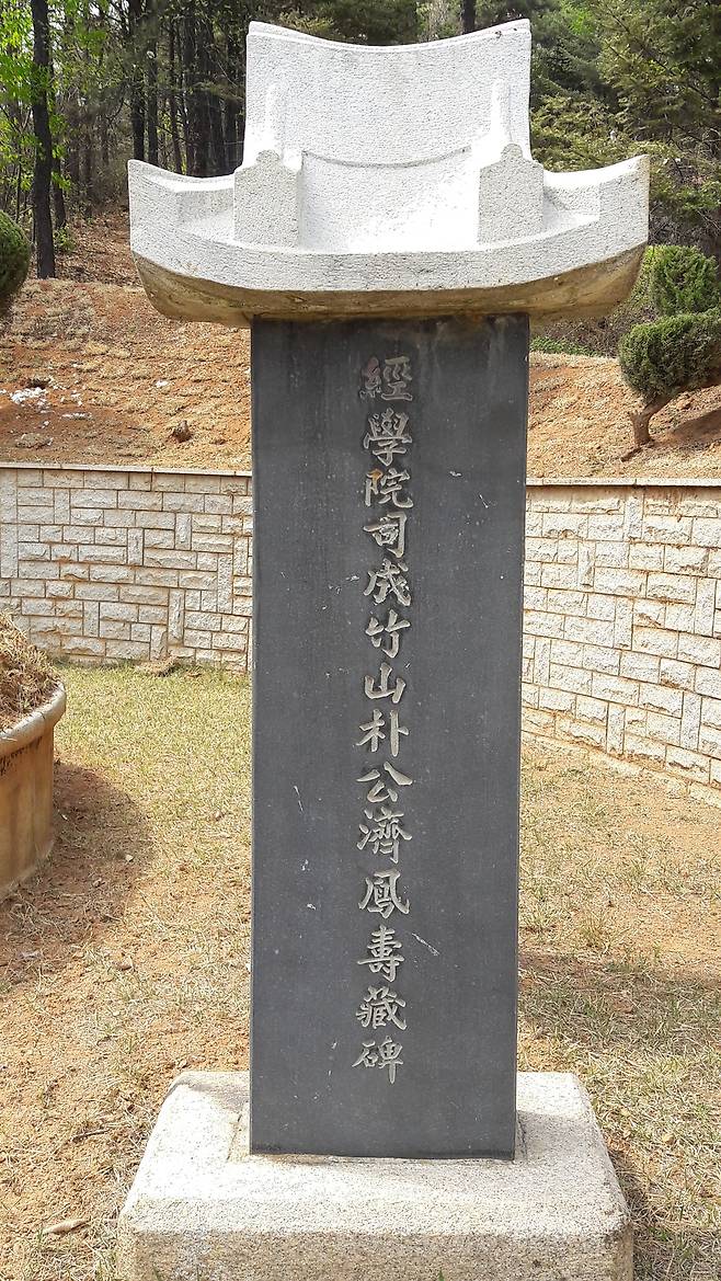 | ▲ 경학원사성이 써있는 친일파 박제봉 비석 부천시 원미구 역곡동에는 친일파 박제봉이 살았던 고택이 있다. 이 고택 뒷산에는 박제봉의 무덤이 있으며 그 무덤에 비석이 서 있는데 <경학원사성죽산박공제봉수장비>라고 써있다 |