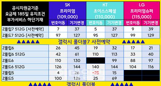 업계 관계자는 “갤럭시 Z플립7과 Z폴드7은 신제품인만큼 통신 3사가 초반에 공시지원금 프로모션을 세게할 수 있다”며 “갤럭시 S25나 아이폰 16의 경우는 SKT 위약금 면제가 있어서 SKT 번호이동이 저렴하다”고 말했다.