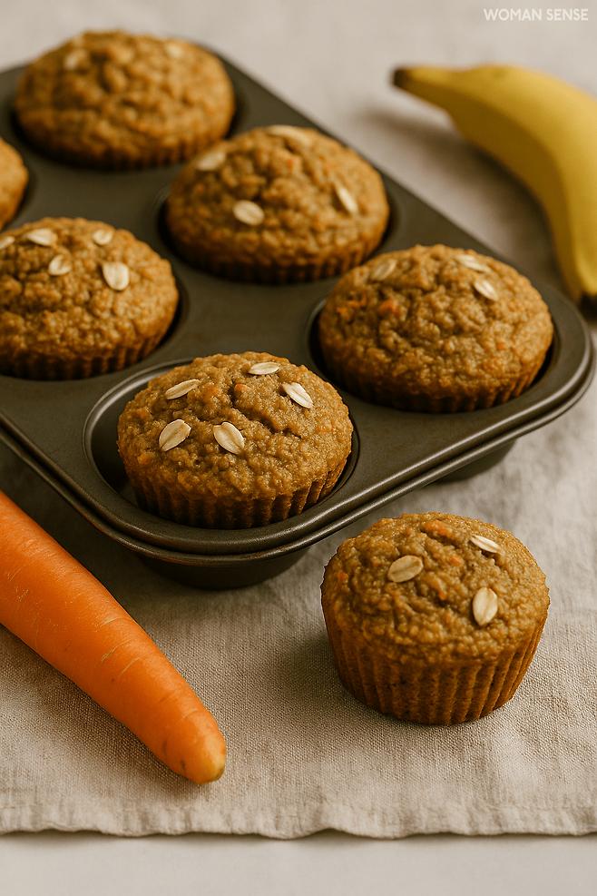 당근 (중간 크기) 1개 (약 100g) – 곱게 갈거나 강판에 간 것, 귀리 가루 또는 오트밀 1컵, 바나나 1개, 달걀 1개, 일반우유 1/4컵, 베이킹파우더 1작은술, 계피가루 1작은술 (선택), 바닐라 추출물 1/2작은술 (선택), 호두나 피칸 약간 (선택), 스테비아 (단맛 조절, 생략 가능)