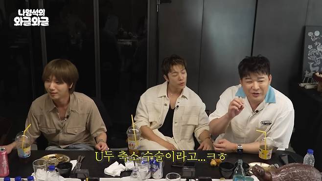 이를 들은 규현이 "그래서 수술하지 않았냐"고 묻자 신동은 "맞다. 이게 너무 강해서 연하게 만들었다. 유두 축소 수술이다. 처음 하면 진짜 싹 없어진 느낌인데 병원 말로는 다시 자란다고 하더라"고 밝혀 웃음을 자아냈다.