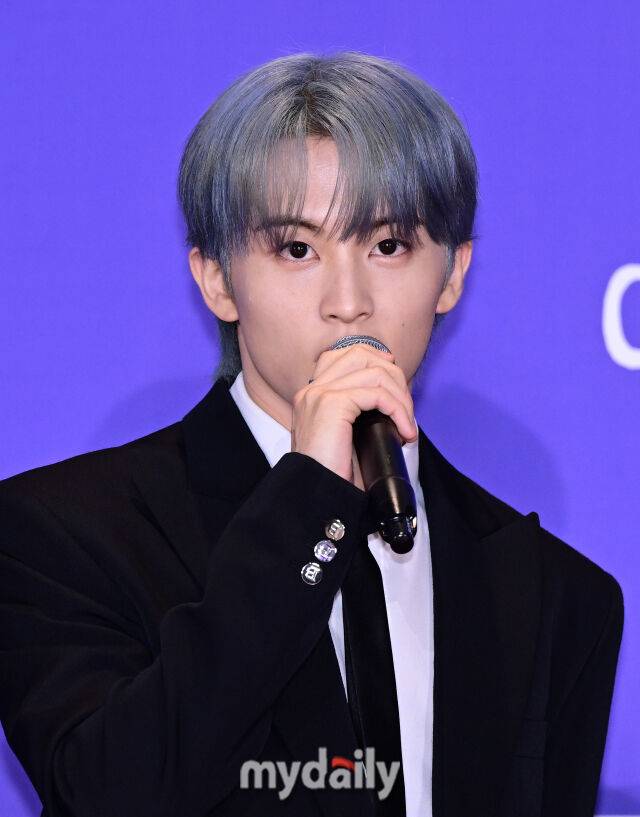 [마이데일리 = 유진형 기자] 14일 오전 서울 잠실 롯데시네마 월드타워점에서 NCT DREAM 정규 5집 'Go Back To Future' 제작발표회가 열렸다. NCT DREAM 마크가 인사하고 있다.