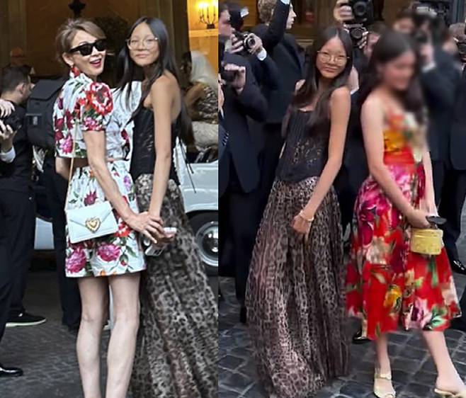 전시회 참석을 위해 화려한 의상을 선택한 엄마와 딸. 이에 현장을 찾은 수많은 사진 기자들의 시선을 끌기 충분했다.