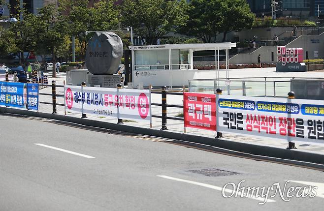 [오마이포토] '양심 없다' 비판 받은 곽규택 해수부 유치 펼침막