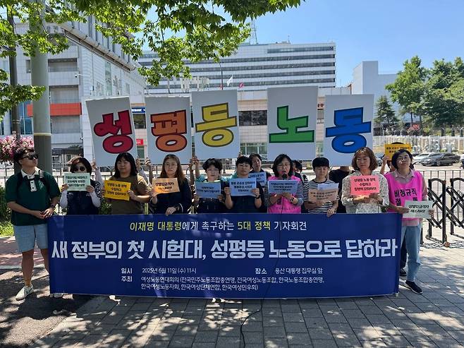 | ▲ 새 정부의 첫 시험대, 성평등 노동으로 답하라 여성노동연대회의 주최로 열린 “새 정부의 첫 시험대, 성평등 노동으로 답하라” 기자회견(2025. 6. 11) |