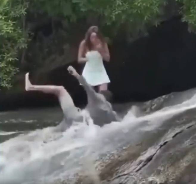 당시 한 관광객이 폭포 꼭대기에서 슬그머니 반지를 꺼내더니 여자친구 앞에서 무릎을 꿇으려다가 순간 발이 미끄러지고 말았다.