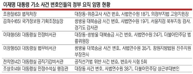 이재명 대통령이 기소된 각종 재판에서 이 대통령을 변호했던 변호인들이 정부 요직을 속속 꿰차고 있다.