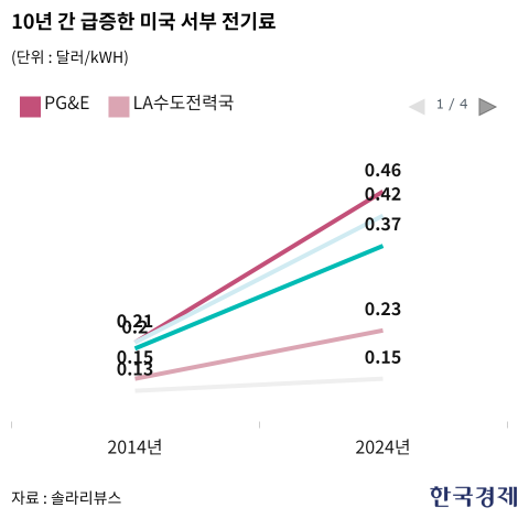 전력회사들도 전력망 확충에 서두르고 있다. 캘리포니아 북중부 지역에 전기를 보급하는 퍼시픽가스앤일렉트릭(PG&E)은 지난 4월 캘리포니아주 정부에 총 31억달러(약 4조2600억원) 규모의 요금 인상을 요청했다. 주 당국이 13억달러 상당의 요금 인상을 승인한지 8개월만이다. PG&E는 "신규 주택과 기업, 전기차, AI 데이터센터 등에 예상되는 역사적인 전력 수요 증가에 대응하기 위해 현대적인 전력망을 구축하겠다"라고 밝혔다.