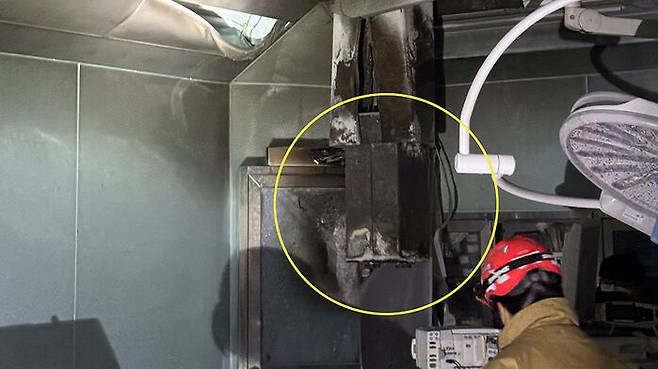▲ 14일 조선대병원 수술실 화재. 노란색 원이 소방 당국이 추정한 발화 지점
